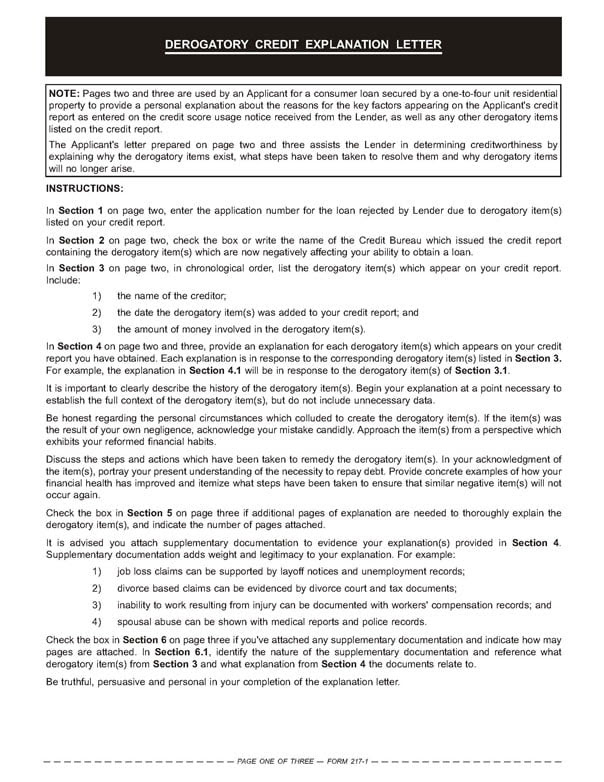 .writing a letter of explanation derogatory credit if any derogatory credit trade lines appear on the credit report, a letter of explanation must be submitted.